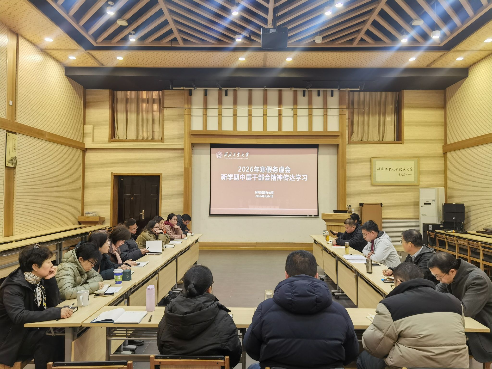 3月2日,基金会秘书处组织全体工作人员召开专题学习会,深入学习领会学校2026年寒假务虚会及新学期中层干部会议精神,重点传达学习学校党委书记李言荣、校长宋保维的讲话要求,结合工作实际,进一步明确新学期工作思路与落实举措。